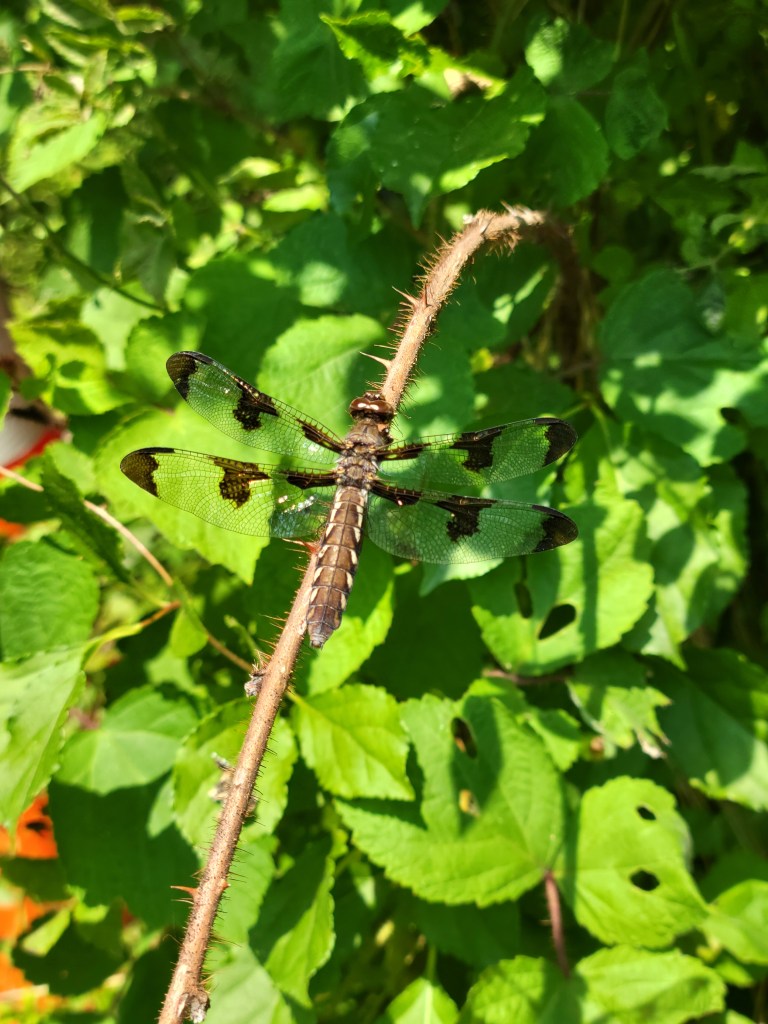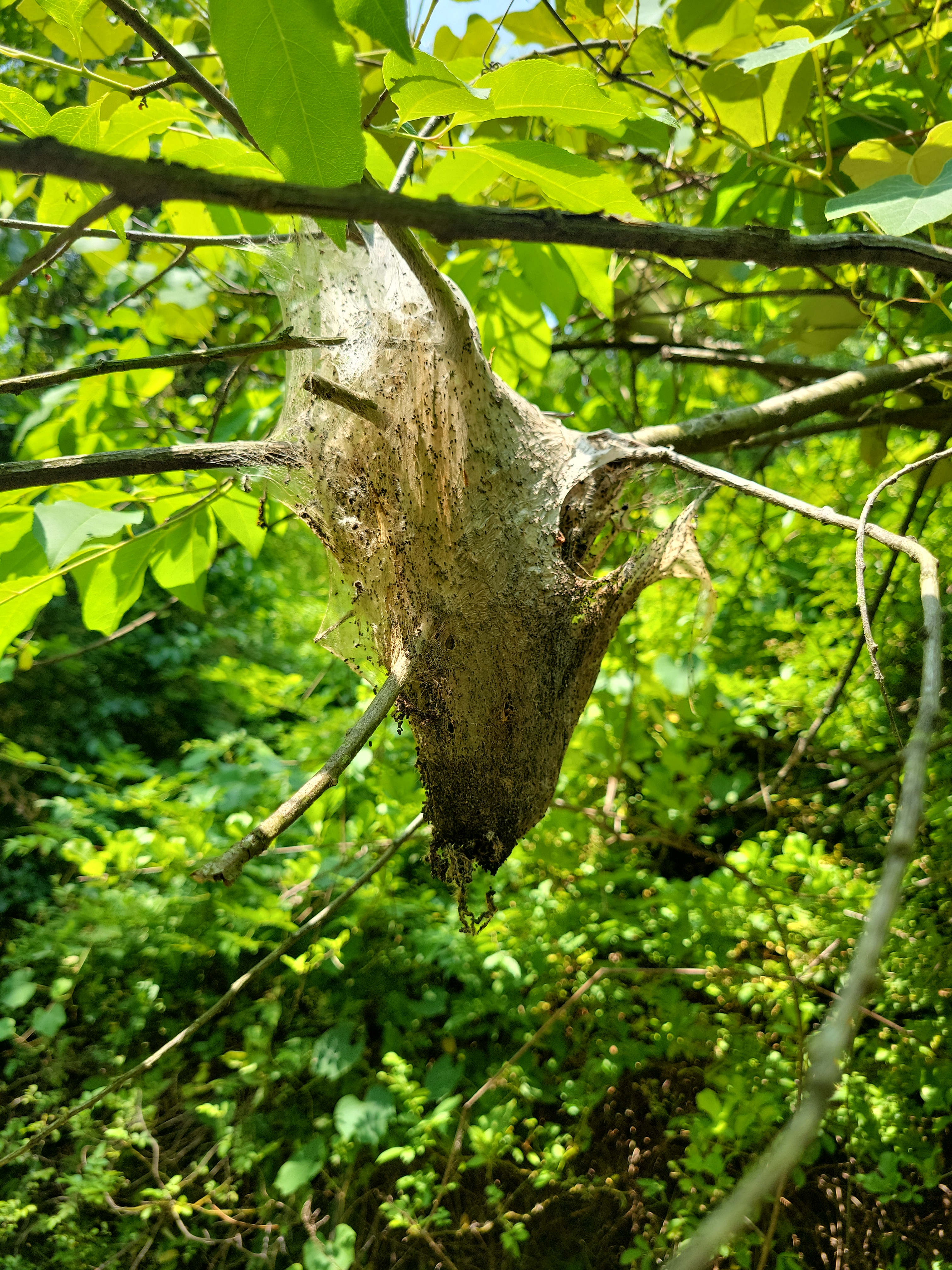 The Old Field featured a wide variety of grasses and forbs, as well as many macroinvertebrates actively pollinating the meadow. We identified yarrow (Achillea millefolium), common milkweed (Asclepias syriaca), Indian hemp or hemp dogbane (Apocynum cannabinum), red clover (Trifolium pratense), and ox-eye daisy (Chrysanthemum leucanthemum) were all in bloom. I was surprised to learn that many of the grasses were introduced species: timothy grass (Phleum pratense), orchard grass (Dactylis glomerata), and reed canary grass (Phalaris arundinacea) (Photo 9) were abundant, although a few native species including soft rush (Juncus effusus) were also visible. There were also scattered trees and shrubs, including sweetgum (Liquidambar styraciflua), the introduced species autumn olive (Elaeagnus umbellata), and a persimmon tree (Diospyros virginiana) with yellow buds just visible. We saw many butterflies and other winged insects, although they were difficult to photograph and identify; I also saw some kind of harvestman (Opiliones spp.) and many Eastern tent caterpillar moth webs (Malacosoma americana).