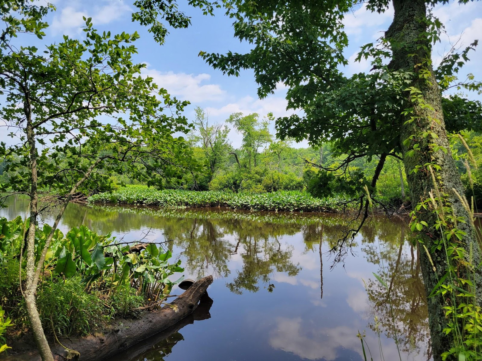 Located along the North Branch of the Rancocas Creek, Rancocas State Park is a protected area that encompasses land that was once used for crops and pastures. The area varies in elevation, about 40 feet at the Nature Center to the low-lying tidal freshwater marsh along the creek, and the trails wind through several distinct plant communities.