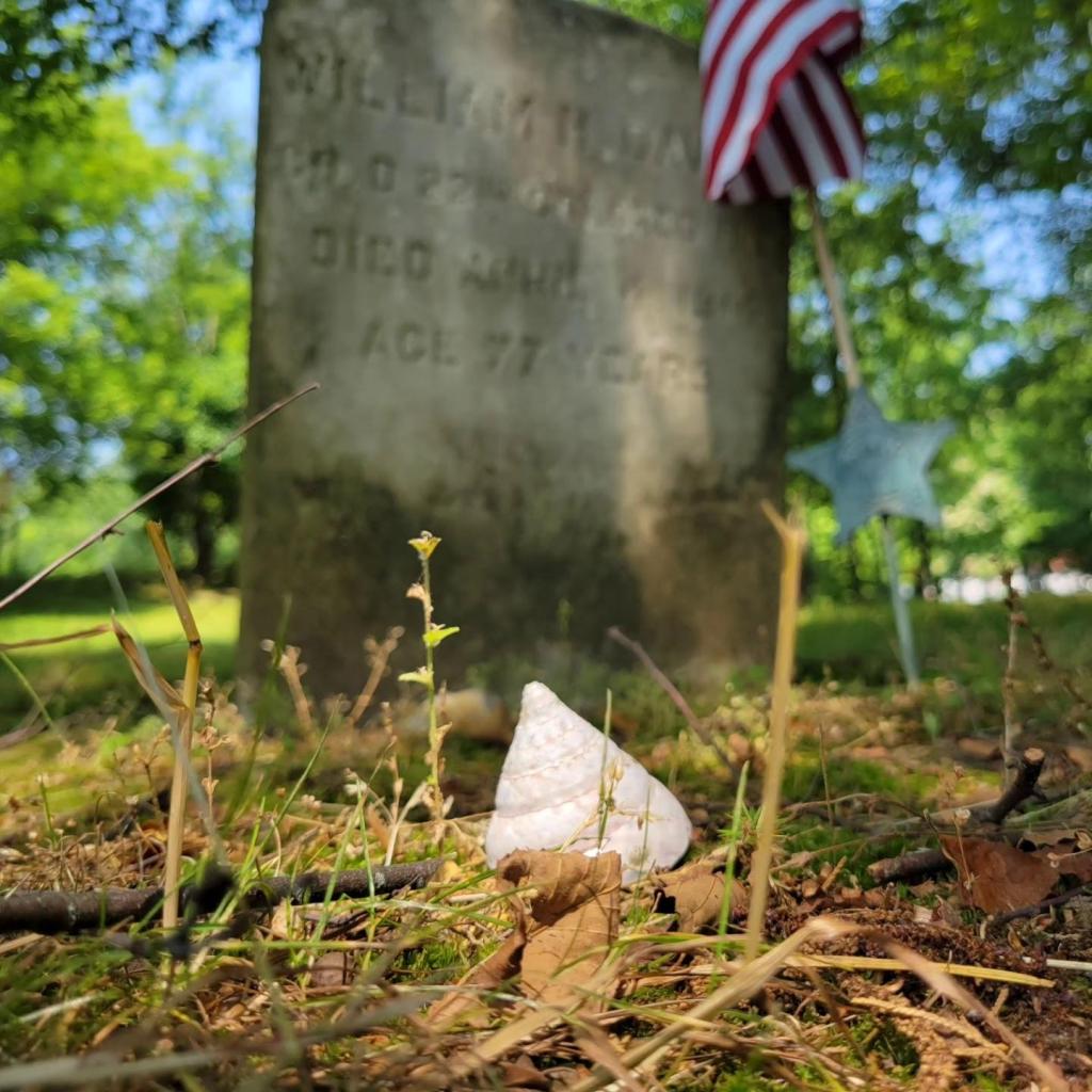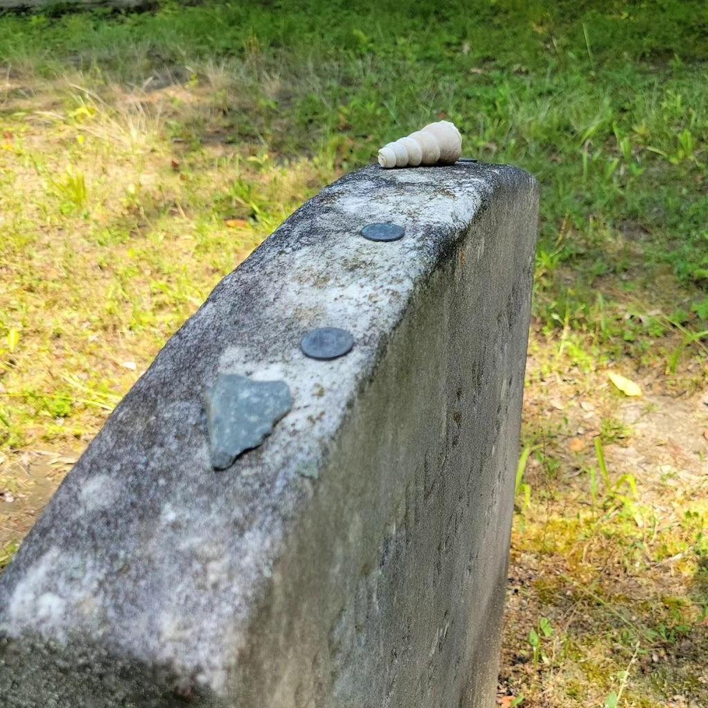We stopped at the cemetery at Timbuctoo, a community founded by free Blacks in New Jersey two hundred years ago. It is not incorporated as a town, but some of the descendants of the original residents still live there, and there is a historical society dedicated to preserving their heritage. Flags adorned many of the graves belonging to veterans of the Civil War, and visitors had left coins (signifying that someone visited this grave) and seashells (possibly signifying a long journey) on the gravestones.