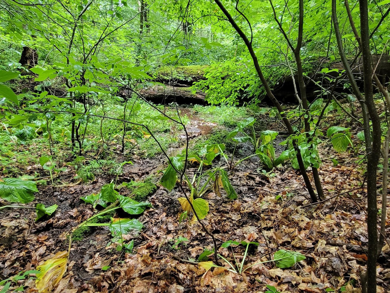 On these quiet wooded trails, the Merlin app recorded gray catbird (Dumetella carolinensis), common yellowthroat (Geothlypis trichas), downy woodpecker (Picoides pubescens), house wren (Troglodytes aedon), and mourning dove (Zenaida macroura).