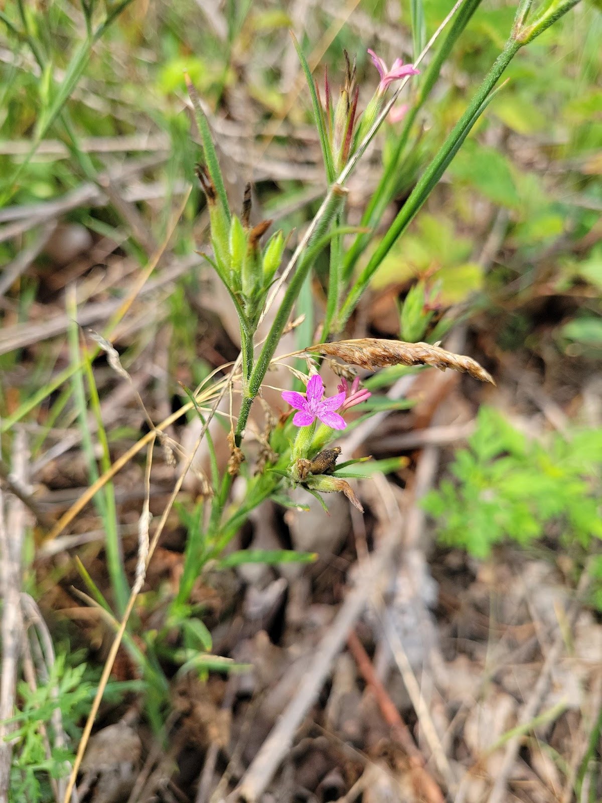 In areas off the gravel trail with slightly more soil accumulation, we saw more of the grasses and forbs that characterize the grasslands: narrowleaf mountainmint (Pycnanthemum tenuifolium) (Photo 8), Deptford pink (Dianthus armeria), sundrops (Oenothera fruticosa), and whorled milkweed (Asclepias verticillata). Some species, like moss pink (Phlox subulata), were challenging to identify because they bloom in the spring.